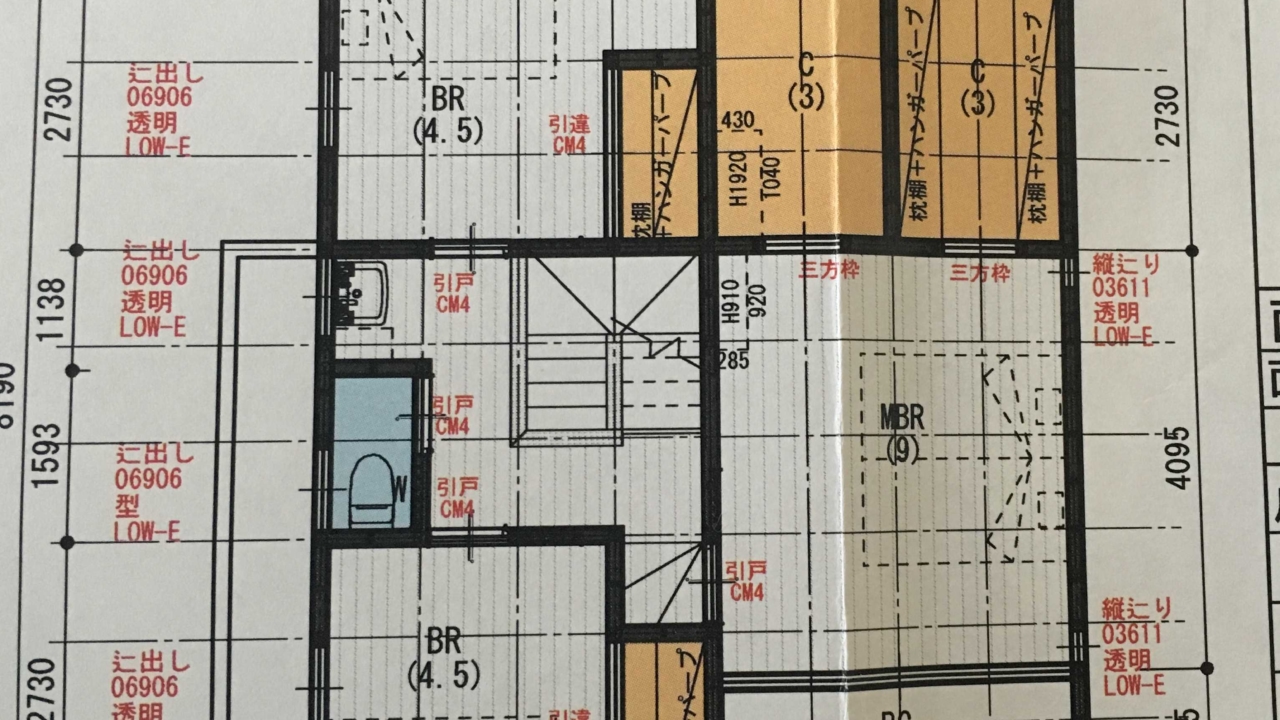 1階は変更箇所ありですが、2階はこのままです(窓は変更しました)。