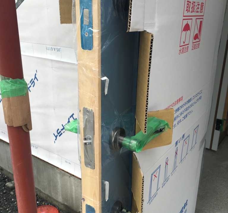残念ながら、まだこうやて段ボールで保護して在る状態でした。。この段ボールがどれるのは引渡しの時みたいですね。